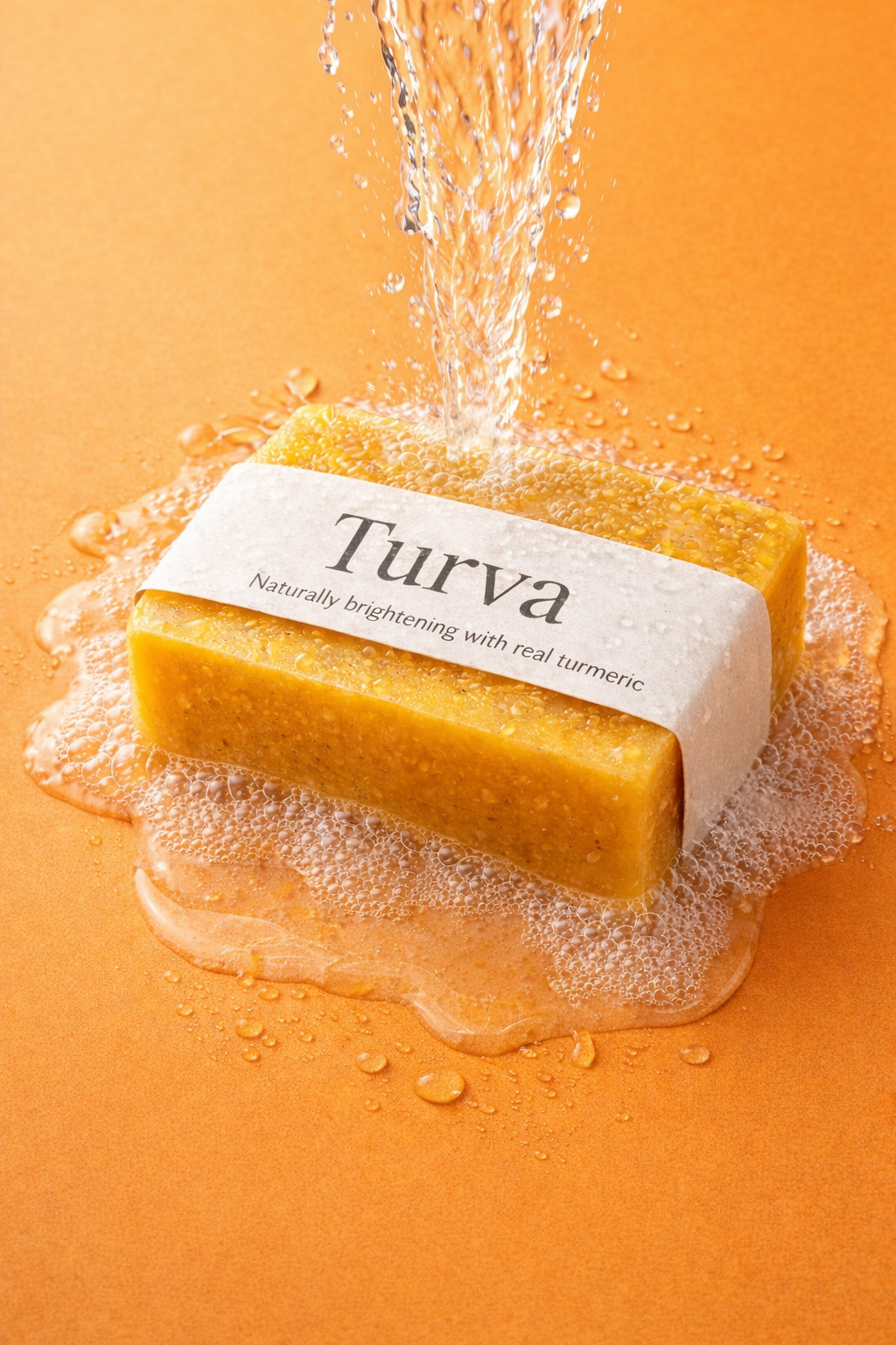 Formulated with real turmeric, Turva Turmeric Soap gently cleanses the skin while helping to enhance its natural brightness and glow.